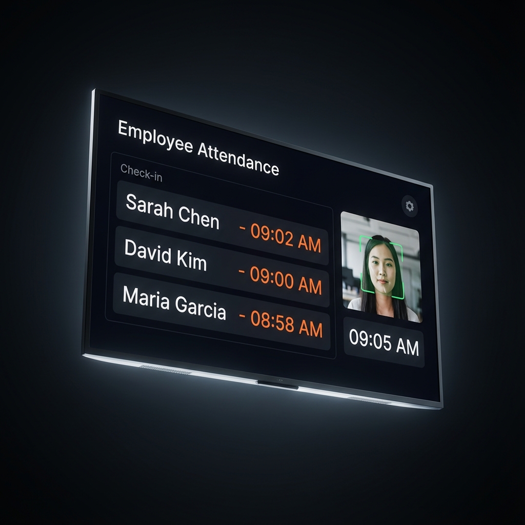 Dedicated Android TV application for employee check-in/out. Optimized for remote control navigation.